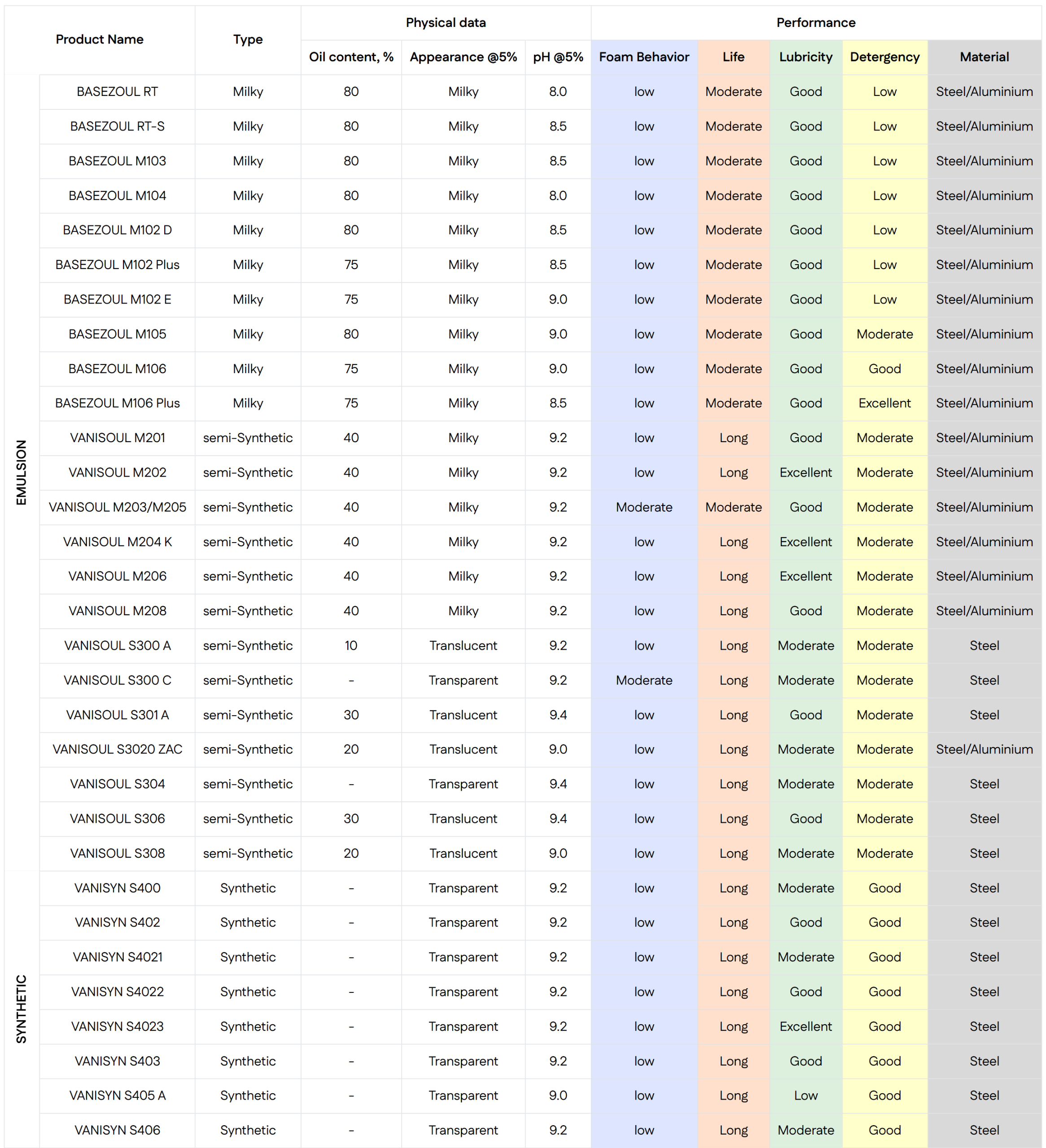 VANISOUL is a semi-synthetic cutting fluid designed for general machining like turning, milling, drilling, and grinding. It combines the cooling of synthetics with the lubrication of oils.